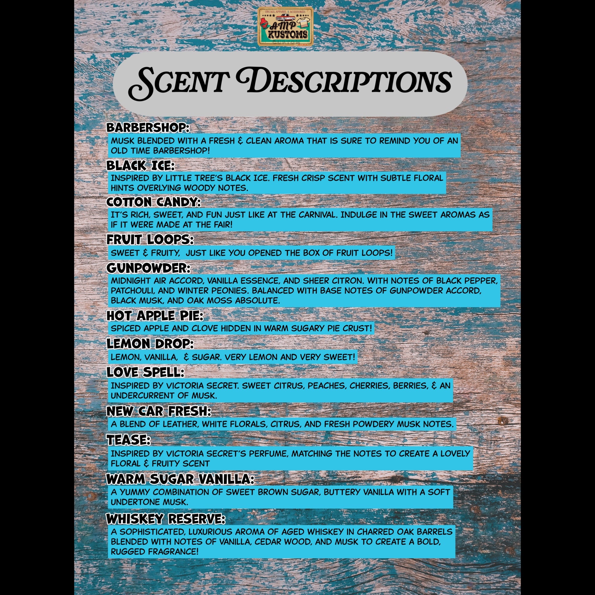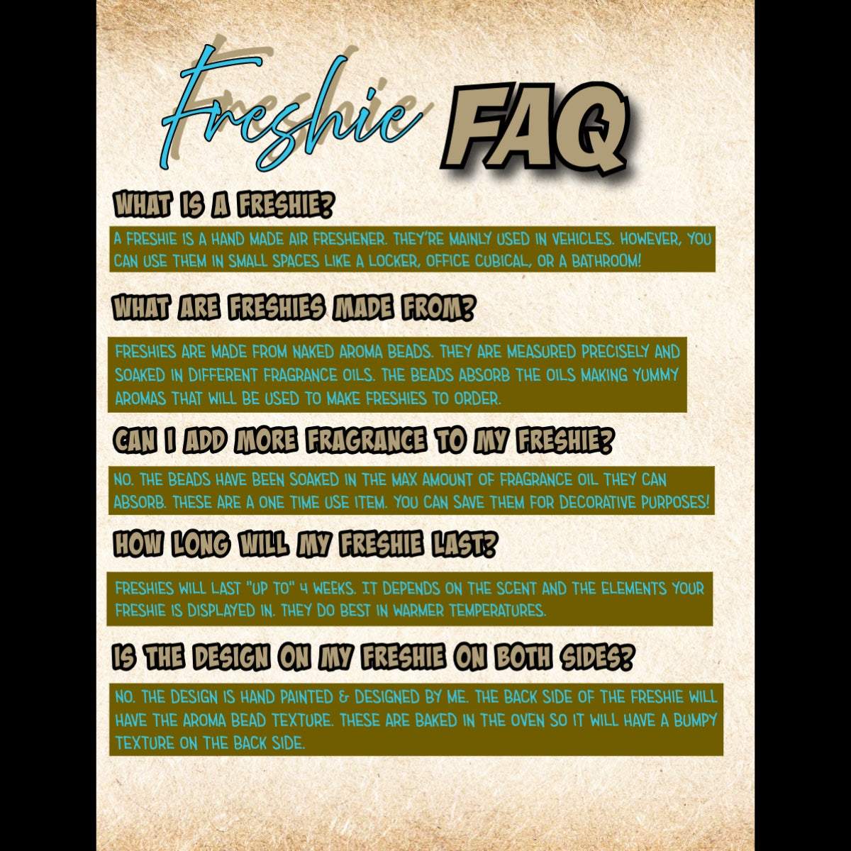 4”W x 2.5”L- “Badass Bonus Dad” car air freshener made out of pre scented aroma beads! Decorated with bold and fun colors perfect for any “bonus dad”. Choose your favorite scent, descriptions as always are pictured above!