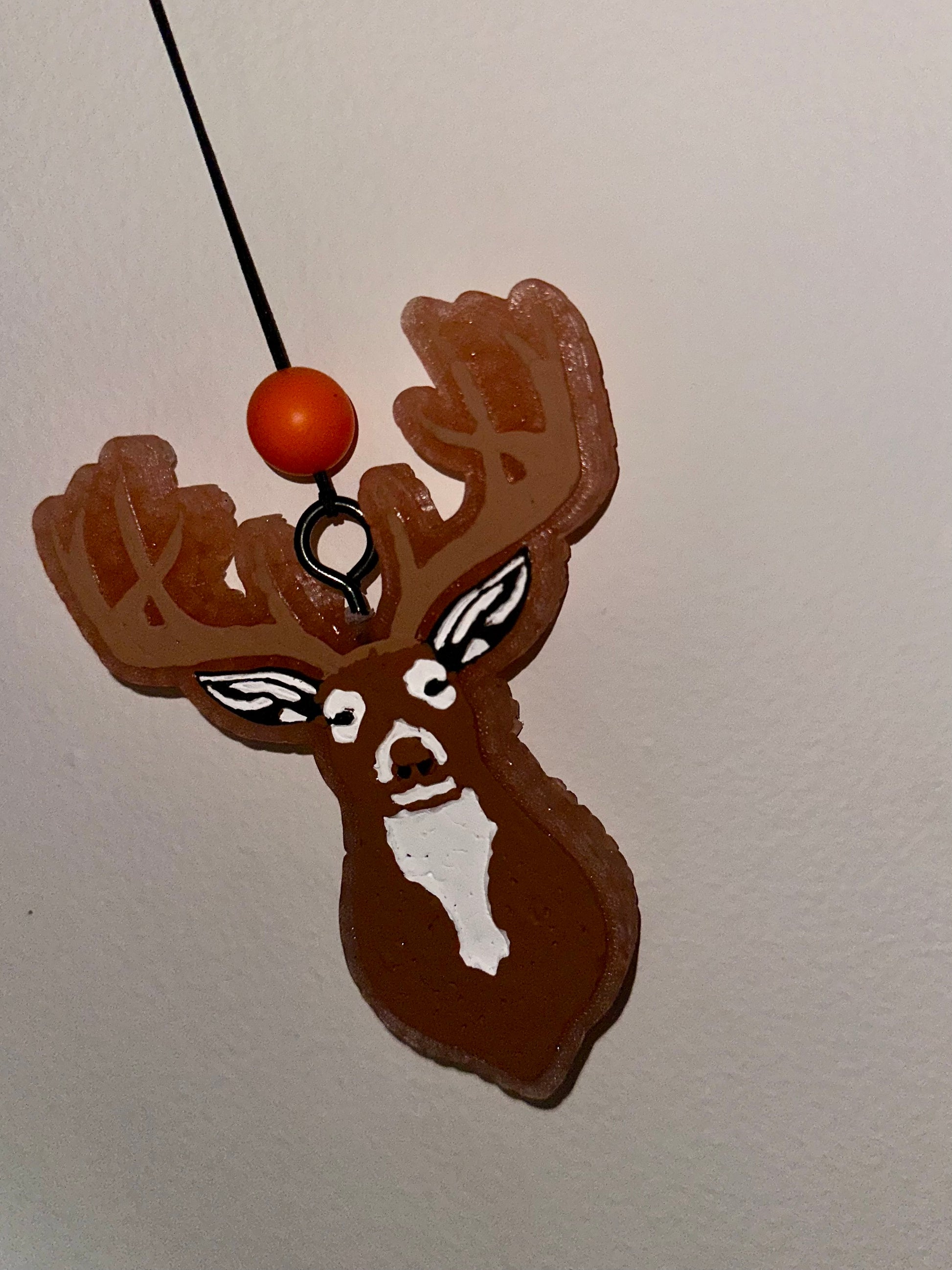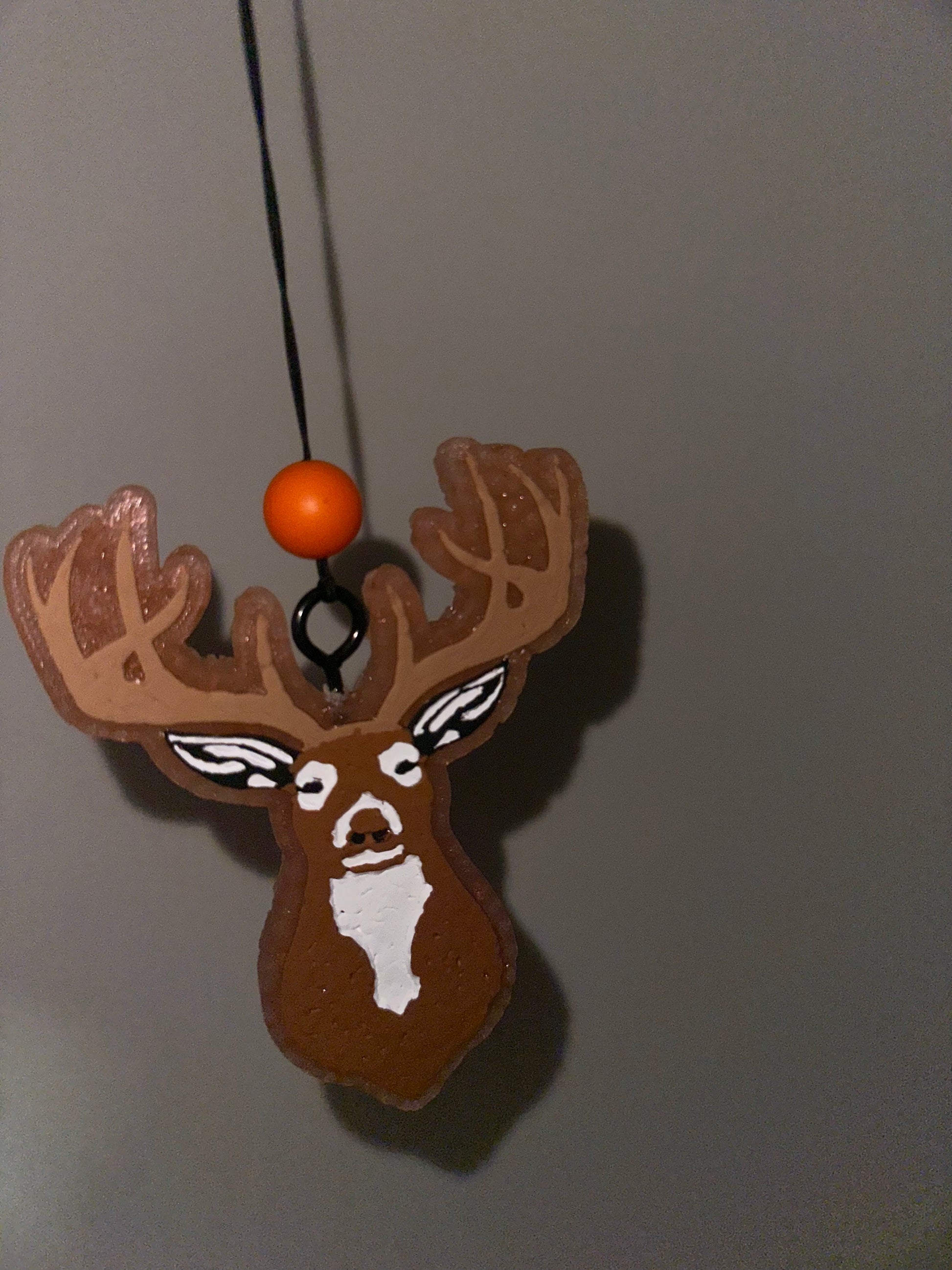 4”W x 4.75”L Buck shaped car freshener made out of scented aroma beads. Decorated to look like a whitetail buck, choose your favorite scent of choice! Descriptions as always are pictured above!